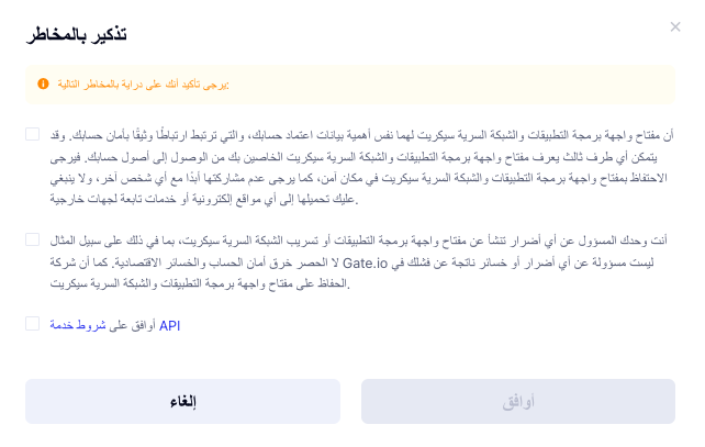 يرجى الحفاظ على مفاتيح API الخاصة بك آمنة وعدم مشاركتها مع أي شخص.