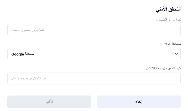 أدخل كلمة مرور الصندوق، وحدد طرق التحقق 2FA، ثم انقر على "تأكيد" للمتابعة.