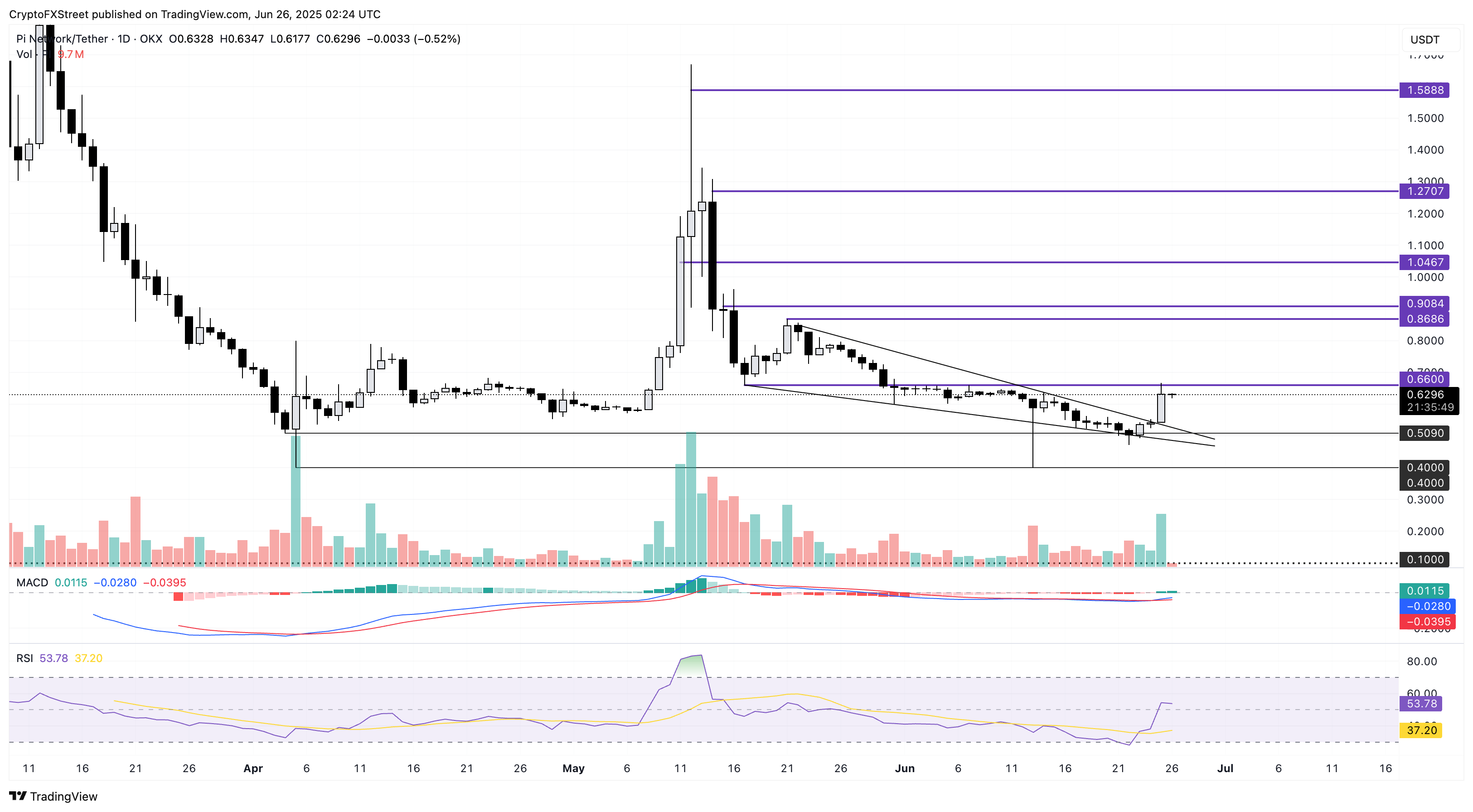 إذا انعكس PI من 0.6600 دولار، فقد يعيد اختبار مستوى 0.5090 دولار الذي تم اختباره آخر مرة في 21 يونيو.