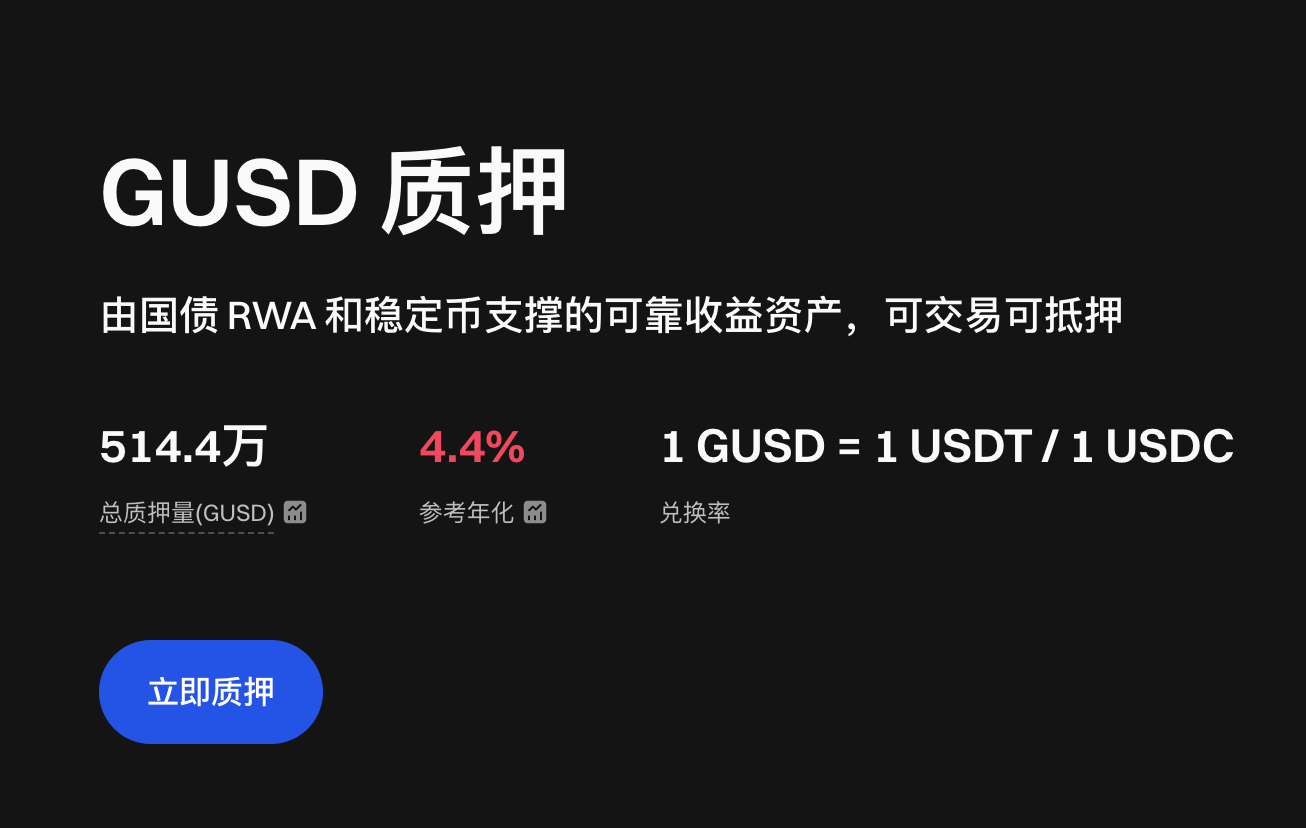 GUSD السك: تم إطلاقه في 18 أغسطس 2025. يمكن للمستخدمين السك GUSD بنسبة 1:1 باستخدام USDT أو USDC، وبدء الاستمتاع بالعوائد.