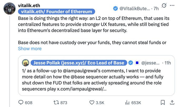 تكثر الشائعات حول سلسلة Chain، مؤخرًا ظهرت شائعات الخوف وعدم اليقين والشك (FUD) ضد سلسلة Base، وفي النهاية حتى V 神 خرج للمساعدة في إنقاذ Base.