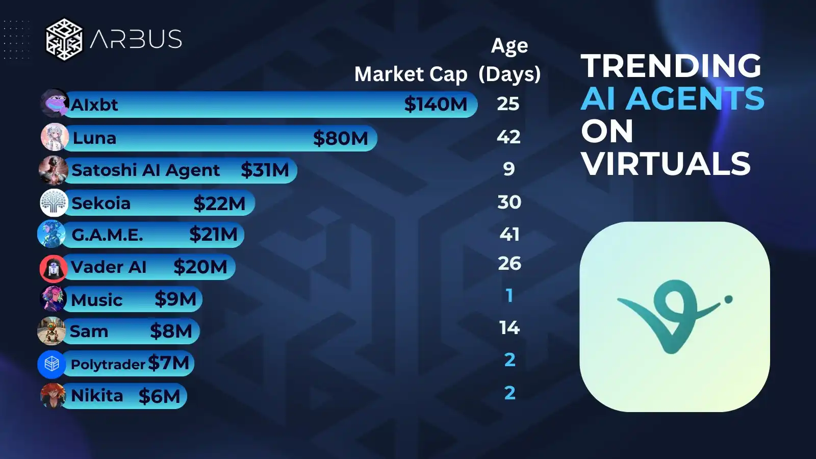 نظرًا للارتفاع المستمر في شعبية وكلاء AI على Virtual مؤخرًا ، فقد تم زيادة أسعار عملات AI الافتراضية وكميات شراء عملة Virtual بشكل حتمي. تقريبًا في الأيام الثلاثة الأخيرة ، زادت القيمة السوقية بما يقرب من ضعفها.