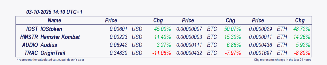 ** Audius and Hamster Kombaat ***: نمت هذه العملات المشفرة بشكل ملحوظ خلال ال 24 ساعة الماضية.