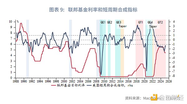 إن عدم اليقين بشأن التضخم الناجم عن التعريفات الحالية والسياسات الأخرى هو العامل المحتمل الرئيسي الذي يقيد بنك الاحتياطي الفيدرالي من إجراء المزيد من التخفيضات في أسعار الفائدة. في الآونة الأخيرة ، كان هناك انتعاش كبير في توقعات التضخم في المسح ، والانتعاش موجود ليس فقط في التوقعات قصيرة الأجل ، ولكن أيضا في التوقعات طويلة الأجل في 5 و 10 سنوات. ومع ذلك ، فإن مقياس توقعات التضخم الذي أنشأه بنك الاحتياطي الفيدرالي ربع سنوي ومتأخر ، ويتم تحديثه حاليا فقط حتى الربع الرابع من عام 2024 ، ولا تزال البيانات مستقرة. قد يكون هذا أيضا سبب غموض باول بشأن توقعات التضخم. يميل أسلوب صنع القرار في بنك الاحتياطي الفيدرالي إلى الاعتماد على البيانات الاقتصادية ، بدلا من تعديل السياسة قبل البيانات الاقتصادية. وبالنظر إلى أن بيانات التضخم الصادرة في أبريل ومايو من المرجح أن تهدأ، فمن المرجح أن يحقق بنك الاحتياطي الفيدرالي توقعات السوق بخفض سعر الفائدة في يونيو. انطلاقا من المؤشرات قصيرة الأجل التي أنشأناها، لا تزال نافذة خفض سعر الفائدة لمجلس الاحتياطي الفيدرالي مفتوحة <1( ) قراءات المؤشرات. خطر انتعاش التضخم في النصف الثاني من العام أكبر ، وستكون هناك توقعات متكررة بخفض أسعار الفائدة خلال العام ، وهناك قدر كبير من عدم اليقين بشأن ما إذا كان يمكن خفض أسعار الفائدة مرة أخرى بعد يونيو.