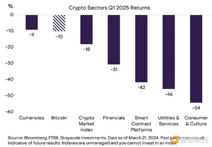 وفقًا لبيانات مؤشر فاندستات / غراي سكال لصناعة التشفير، شهد سوق العملات المشفرة تصحيحًا في الربع الأول من عام 2025، بينما كانت الأسهم التكنولوجية وغيرها من الأصول ذات المخاطر أيضًا في أداء ضعيف.