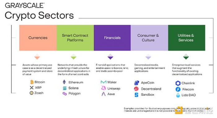 حاليا ، هناك أكثر من 40 مليون رمز مميز في صناعة الأصول الرقمية بأكملها (باستثناء NFTs). من أجل تتبع هذه المساحة بالكامل ، تقسم Grayscale Research السوق إلى خمسة قطاعات مختلفة لصناعة التشفير بناء على الاستخدام الفعلي للبرنامج الأساسي (انظر الشكل 1). يمكن للمستثمرين مراقبة أداء كل قطاع من خلال سلسلة Crypto Index التي تم تطويرها بالشراكة مع FTSE / Russell. اعتبارا من أحدث إعادة توازن للمؤشر لدينا ، يغطي إطار صناعة التشفير الآن 227 أصلا مختلفا بقيمة سوقية إجمالية تبلغ 2.6 تريليون دولار ، أي حوالي 85٪ -90٪ من إجمالي القيمة السوقية المقدرة للعملات المشفرة.