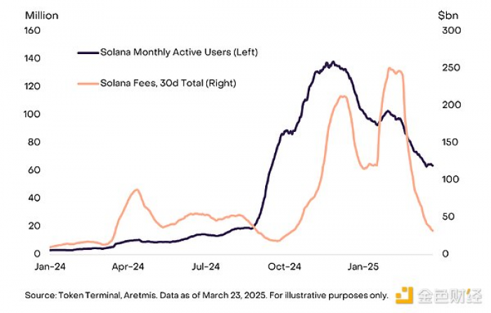 الشكل 4: بلغت ذروة عدد المستخدمين النشطين شهريًا في سولانا حوالي 140 مليون