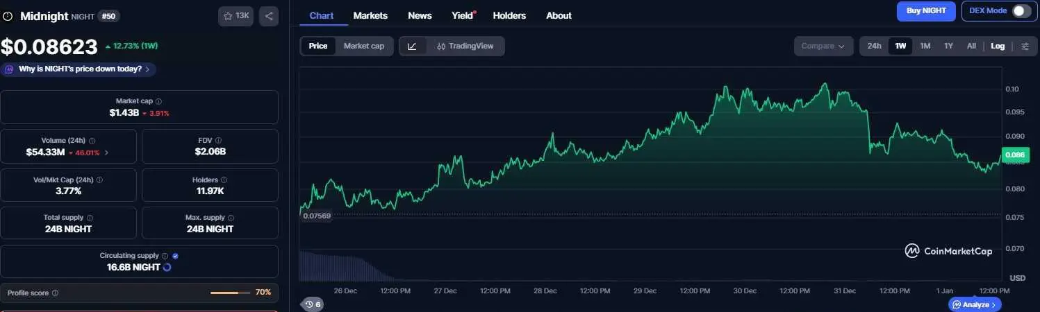 منتصف الليل (ليلة)، رمز يركز على الخصوصية مبني على شبكة كاردانو (ADA)، كان في العديد من النواحي الإطلاق المحدد لشهر ديسمبر 2025، حيث ارتفع إلى قيمة سوقية تقدر بـ $1 مليار دولار خلال أسبوعه الأول.