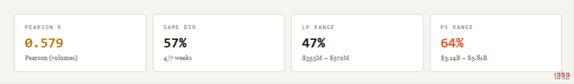 المنطق بسيط: في سوق طبيعي، ينبغي أن يكون حجم تداول Launchpad وPumpSwap مترابطًا إيجابيًا مع وجود تأخر زمني. تعني تنشيط Launchpad أن الاهتمام بالمضاربة الحقيقي مرتفع؛ وتدخل جزء من الأموال عبر آلية التخرج إلى PumpSwap، ما يدعم التداول بعد الإدراج.