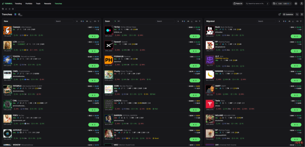 بعد أن استحوذت Pump.fun على Padre، تم تغيير اسمه إلى Terminal، ويُوضع كمنصة تداول احترافية، وهي حاليًا تدعم Solana وBNB وBase وETH.
