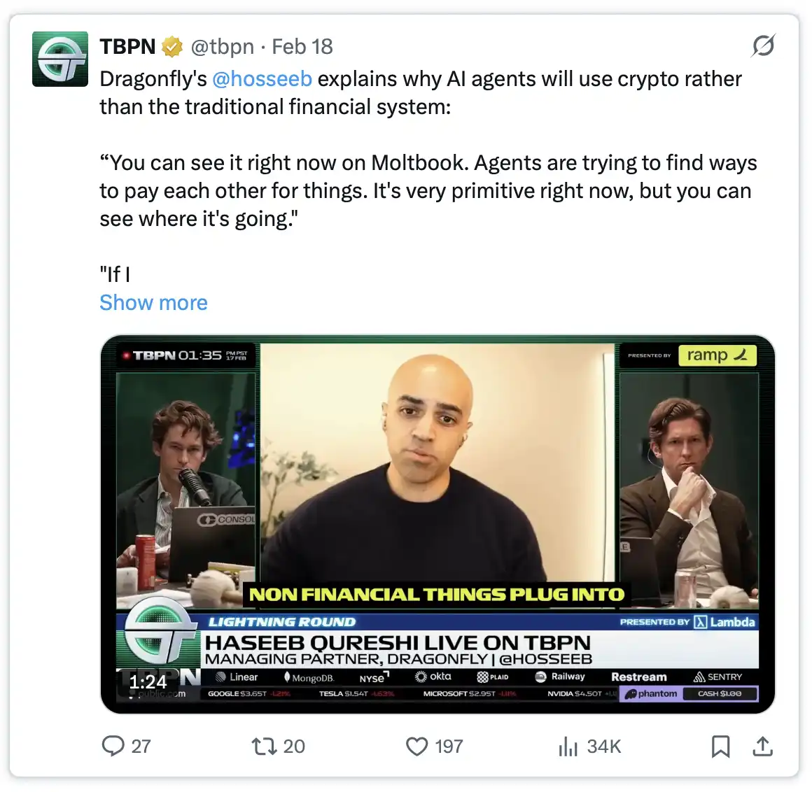 Kryptowährungen haben die letzten zehn Jahre für gewöhnliche Menschen stets mit Nervosität und Fremdheit verbunden. Haseeb, Partner bei Dragonfly Capital, ist der Ansicht, dass das Problem nicht im Scheitern der Kryptowährungen liegt, sondern darin, dass wir die falschen Nutzer direkt damit arbeiten lassen. Mit dem Aufstieg von KI-Agents, die zunehmend die Ausführung finanzieller Transaktionen übernehmen, werden die Eigenschaften der Kryptowährungen – Determinismus, Verifizierbarkeit und die permissionless Natur – zu einer idealen Grundlage für das Maschinenwesen.