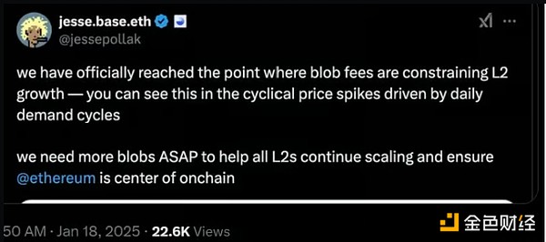 Pada dasarnya, ada 3-4 L2 yang terus memenuhi target blob/block (3). Ini menyumbang sekitar 70% dari kebutuhan ruang blob. Oleh karena itu, ini berarti L2 lainnya perlu bersaing untuk ruang blob, yang akan meningkatkan biaya. Ini pada dasarnya sama dengan masalah skalabilitas yang dihadapi Ethereum di tingkat L1.
