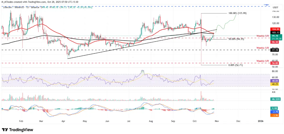 Grafik LTC/USDT harian | Sumber: TradingViewIndikator teknis juga memberikan sinyal positif: RSI pada kerangka waktu harian mencapai 48, mendekati zona netral 50, menunjukkan bahwa tekanan jual semakin melemah dan peluang pembalikan bullish mulai terbuka jika RSI melewati batas ini. Pada saat yang sama, persilangan bullish pada MACD yang terbentuk sejak hari Sabtu terus memperkuat prospek optimis untuk LTC.