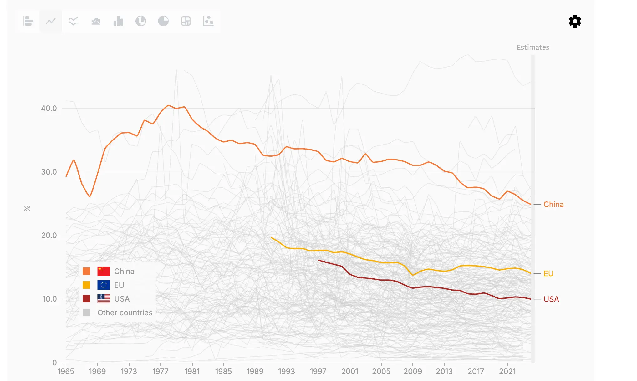 Secara teori, dalam prinsip akuntansi keuangan, neraca transaksi berjalan global selalu berjumlah nol, karena ekspor suatu negara adalah impor negara lain, dan pembayaran/transfer juga saling berhubungan. Ketika surplus perdagangan mencapai rekor tertinggi, itu berarti defisit bersih dari beberapa negara impor juga meningkat. Dalam lingkungan makroekonomi saat ini, semua negara berusaha menghidupkan ekonomi mereka, sehingga peningkatan defisit perdagangan akan menekan GDP negara tersebut, terutama bagi negara maju yang sudah mengalami pertumbuhan rendah. Fluktuasi kecil dalam data ini justru berdampak besar terhadap pertumbuhan GDP. Untuk mengurangi defisit perdagangan, ada dua cara: pertama, meningkatkan proteksionisme dengan menaikkan tarif, dan kedua, menyesuaikan nilai tukar. Yang pertama, melalui perang tarif AS-China yang sementara berhenti, dan yang kedua, penguatan RMB secara teratur akan membantu meredakan gesekan politik dan mengurangi pengeluaran pemerintah terkait konflik tersebut.