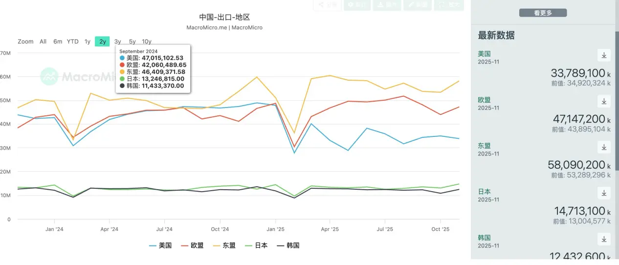 • Stablecoin Euro: Menurut saya, stablecoin Euro adalah kategori aset paling menarik dari ketiganya. Pertama, penerbitan EURC oleh Circle sudah cukup besar dan likuid. Kedua, fluktuasi kurs Euro terhadap RMB cenderung lebih stabil dibanding USD. Melihat data ekspor China, tiga negara utama adalah ASEAN, UE, dan AS. Dampak perang dagang terlihat dari penurunan ekspor ke AS, sementara ekspor ke UE dan ASEAN tetap tinggi. Khusus UE, karena proporsi produk industri tinggi, dan karena China mengekspor banyak produk industri ke UE, termasuk mobil, maka stabilitas kurs EUR terhadap RMB penting untuk menjaga daya saing.