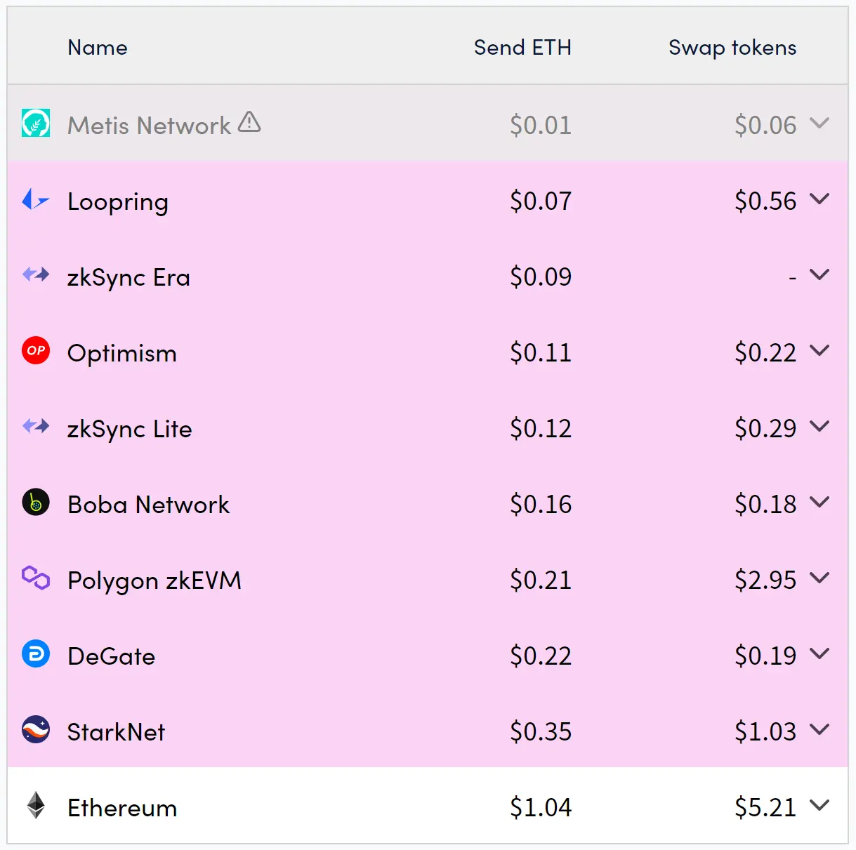 Mengurangi biaya partisipasi ekologis dapat mengumpulkan reputasi pengguna yang baik: Dengan desain Hybrid Rollup yang cerdik, pengalaman transaksi ekosistem Metis menjadi efisien dan aman. Selain itu, Metis mengintegrasikan MemoLabs penyimpanan terdesentralisasi, yang membuat biaya transaksinya dibandingkan dengan Optimisme dan Arbitrum Sepuluh kali lebih rendah, transfer ETH kurang dari $0,01. Meskipun di masa depan, seiring Metis mengubah lapisan DA menjadi jaringan utama ETH, biaya transaksi akan meningkat, namun biaya tersebut masih dalam kisaran yang rendah, dan keamanan transaksi akan lebih ditingkatkan.