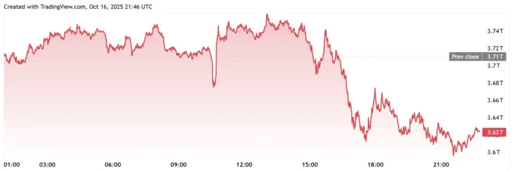 Saat ini, pasar kripto turun hampir 3%, dengan total kapitalisasi pasar menyusut menjadi $3,6 triliun.