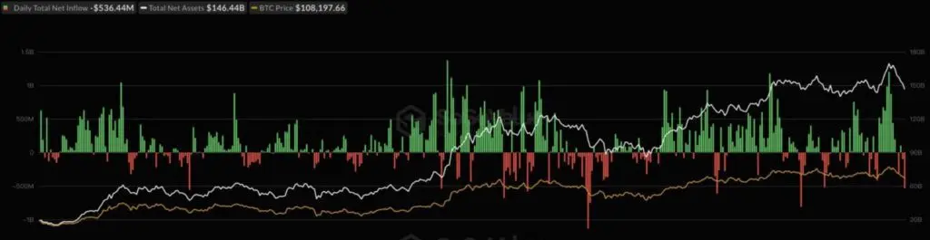 Selain itu, pada 16 Oktober, ETF Bitcoin spot (BTC) di Amerika Serikat mencatat aliran keluar bersih sebesar $536 juta, menurut data dari sebuah platform. Yang lebih mencolok, tidak satu pun dari dua belas ETF BTC mencatat aliran masuk bersih. Ini menunjukkan kehati-hatian dari investor di tengah volatilitas pasar yang meningkat. ETF Ethereum spot (ETH) juga mengalami aliran keluar bersih gabungan sebesar $56,88 juta pada hari yang sama.