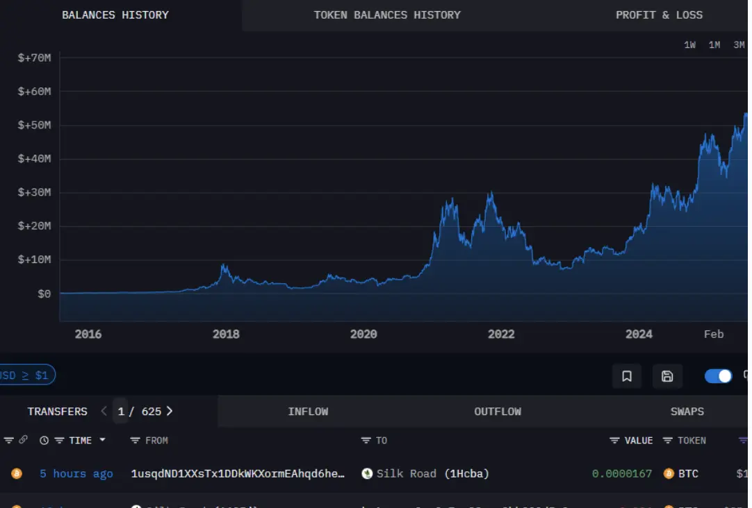 Platform pemantauan blockchain menandai serangkaian transaksi Bitcoin terkait penyitaan Silk Road yang bersejarah, dengan lebih dari $3 juta BTC dikonsolidasikan ke dalam alamat baru di bawah kendali pemerintah AS yang tampaknya. Data on-chain menunjukkan bahwa koin tersebut berasal dari dompet yang sudah lama tidak aktif yang terkait dengan penangkapan awal pasar gelap Silk Road, yang telah ditindak oleh Departemen Kehakiman (DOJ) selama bertahun-tahun melalui kasus penyitaan sipil dan penuntutan pidana.