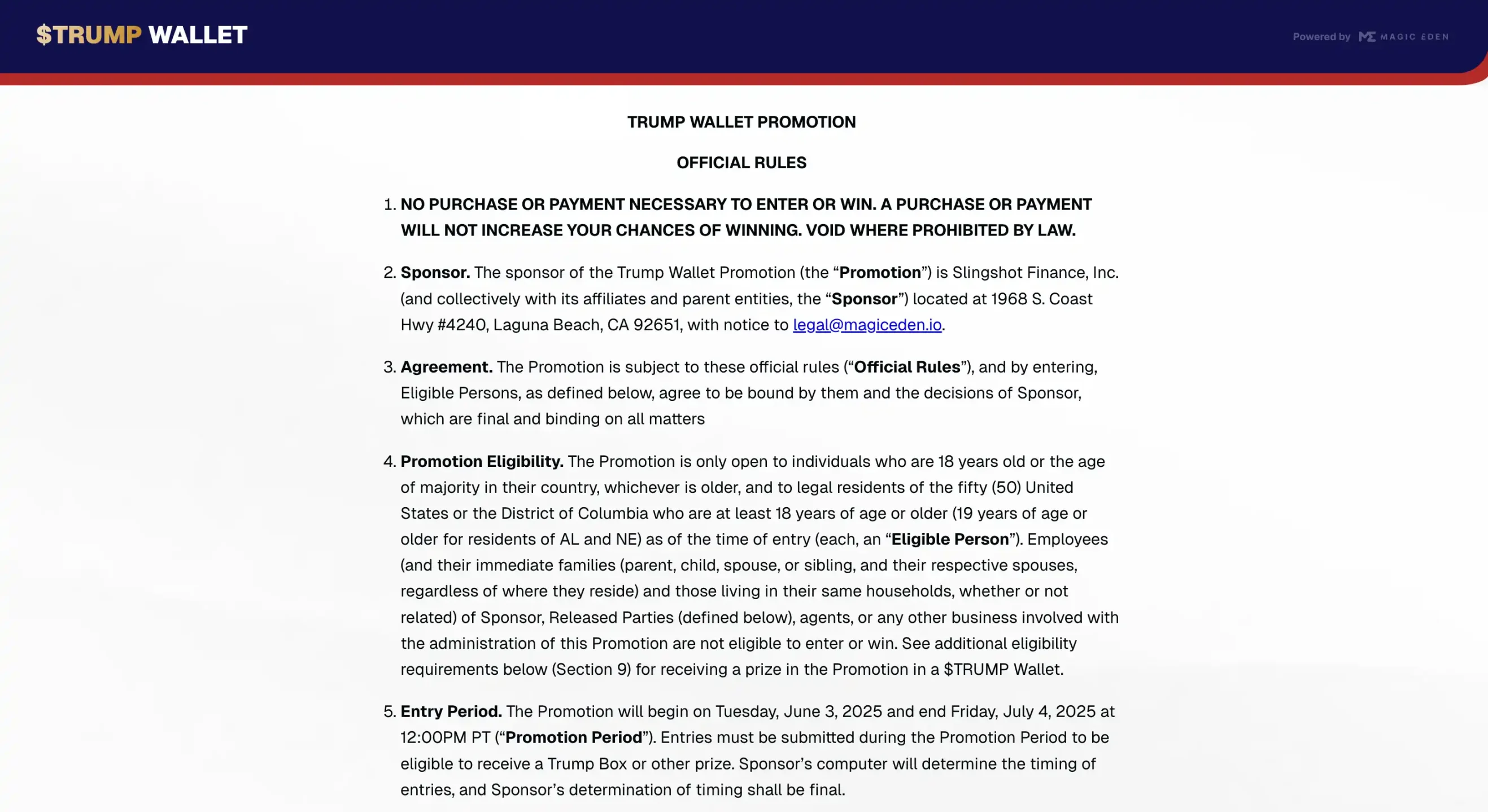 多くの「WLFIメンバー」が抵抗しましたが、TrumpMemeの公式アカウントとMagicEdenチームメンバーはこれを確認しました。 現在、Trump Walletの元のXアカウントはTwitterによって公式に禁止されており、それ以前は、アカウントはMagicEden Gold Standardに属するアカウントであり、プライバシーポリシーと利用規約または「プロモーション」を表示するための公式Webサイトの情報はすべて、2か月前にMagicEdenによって買収されたSlingshotFinanceプロジェクトの責任です。