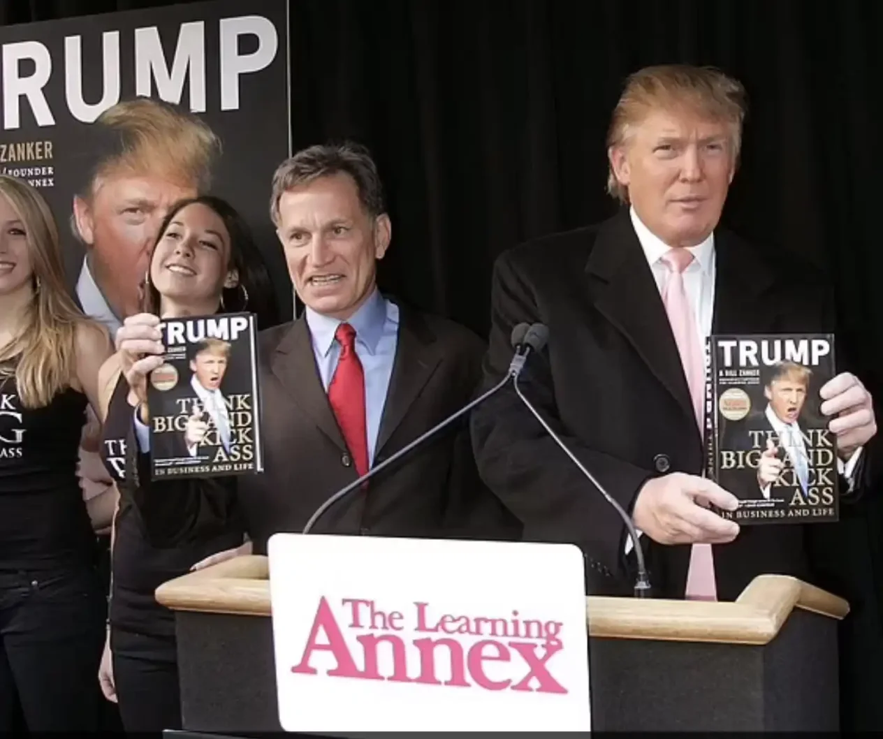 そして、2000年頃に会い、何度も一緒に働いてきたので、ビル・ザンカーは「教育のマクドナルド」にしたいと考えていたラーニングアネックスを設立しました。 1980年にザンケルがニューヨークのワンルームマンションで5,000ドルで設立した同社は、急速に成長し、一時は1億ドル以上の収益を上げました。 このコースでアドバイスをくれた有名人の中には、モチベーションスピーカーのトニー・ロビンス、元ボクサーのジョージ・フォアマン、そして2002年にラーニング・アネックスで「野望:あなたができないことは何もない!」と題したスピーチを行ったトランプがいました。ザンカーはトランプに1回の出演につき150万ドルを支払ったと主張したが、トランプは後に実際には40万ドルしか支払わなかったことを認めた。