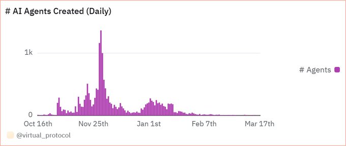Virtualsプラットフォームで新たに発射されたAIエージェントの数は、崖のような急激な減少傾向を示しています。現在の新しいAIエージェントは、現在の製品と比較して差別化された優位性がなく、逆転するのは難しいです。