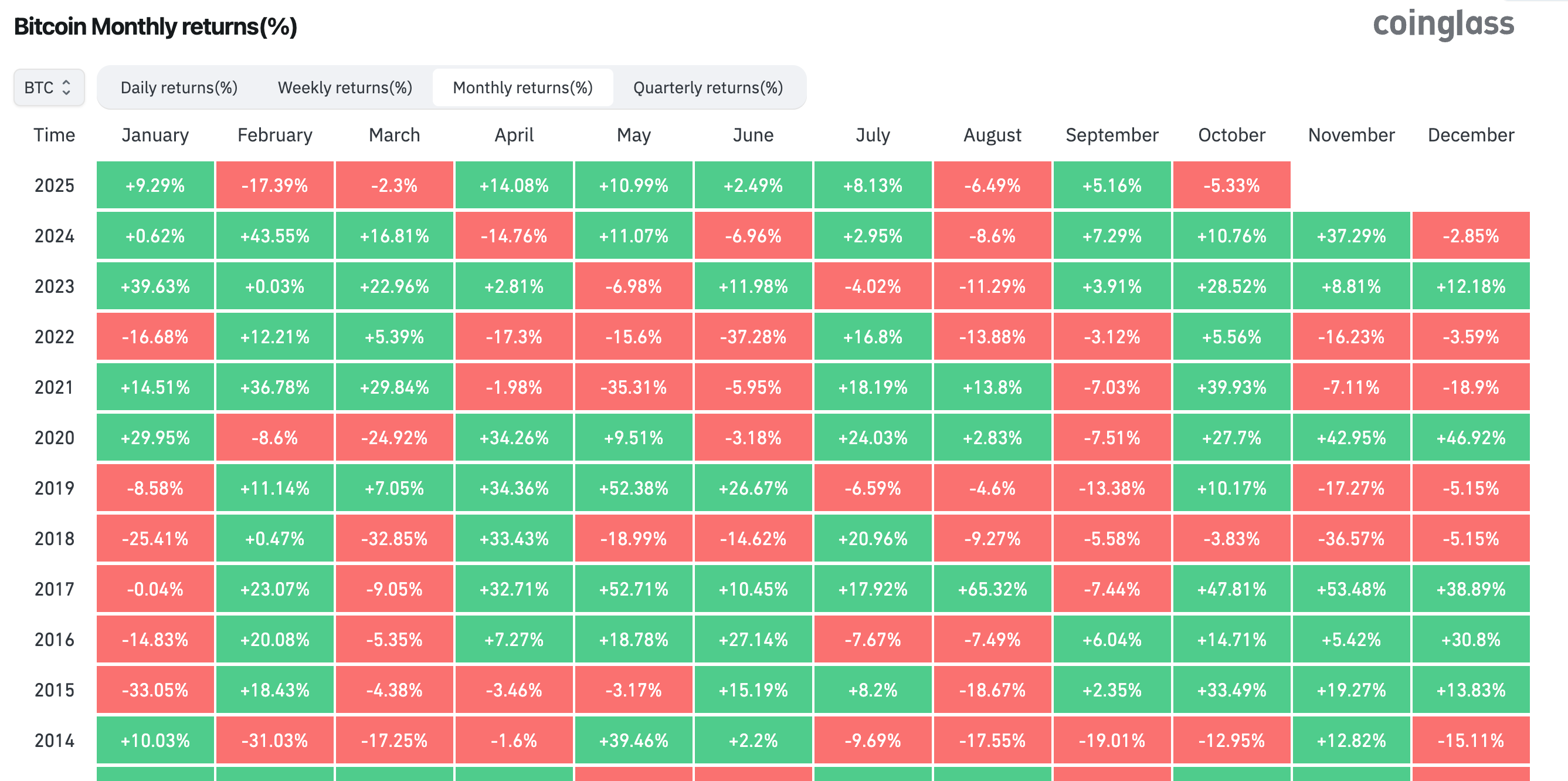 ビットコインは月初から5%下落し、日曜日の遅いアジア時間に107,000ドル近くで取引されています。10月の歴史的平均は約19.8%で、11月の42%は資産の最も強い月です。