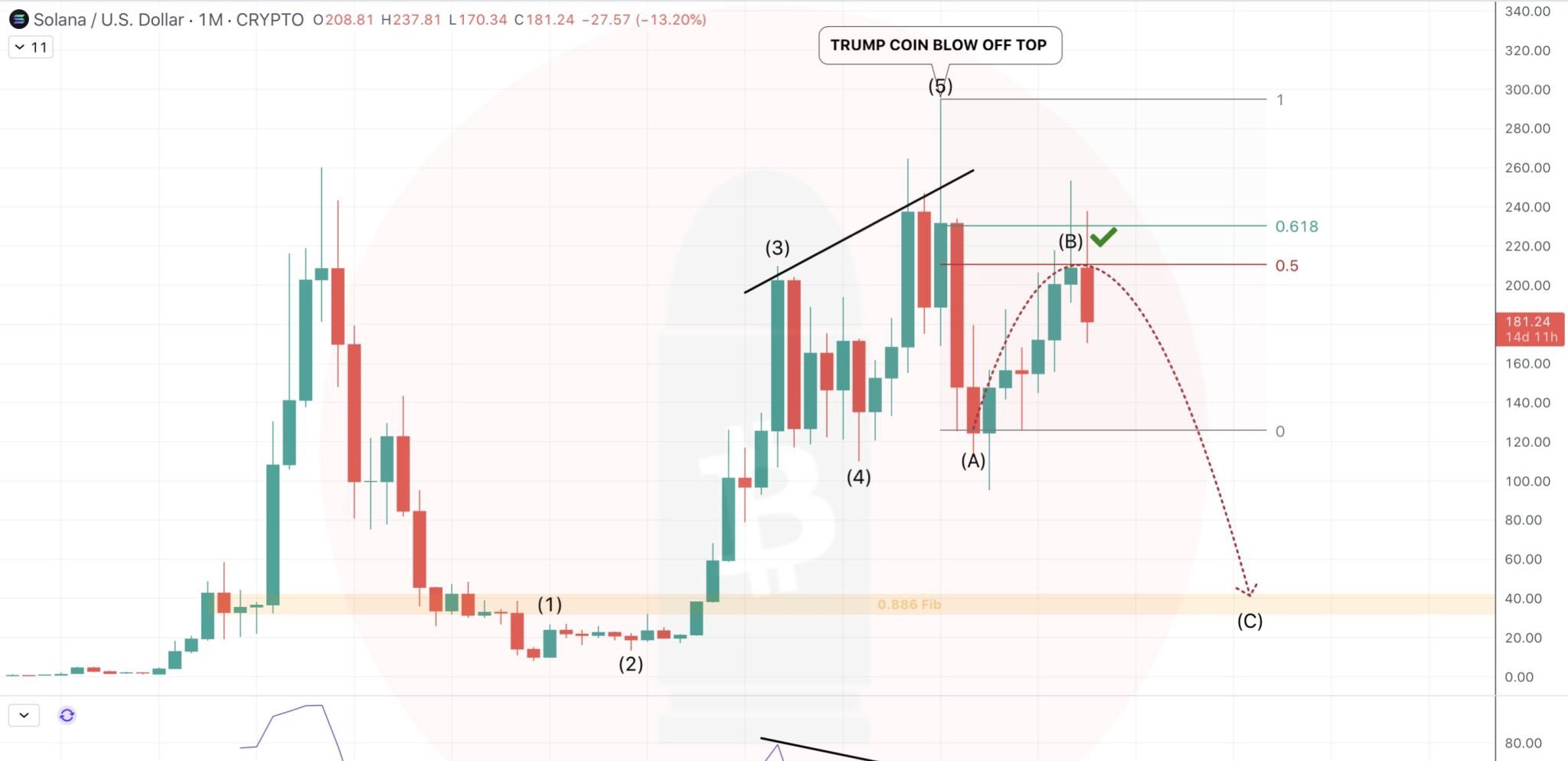 彼は、市場がエリオット波動パターンの波©に入った場合、ソラナの保有者は今後数週間で大幅な下振れボラティリティに備えるべきだと付け加えました。