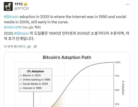 「ビットコイン、2025年導入率3%…‘1990年インターネットレベル’初期段階」