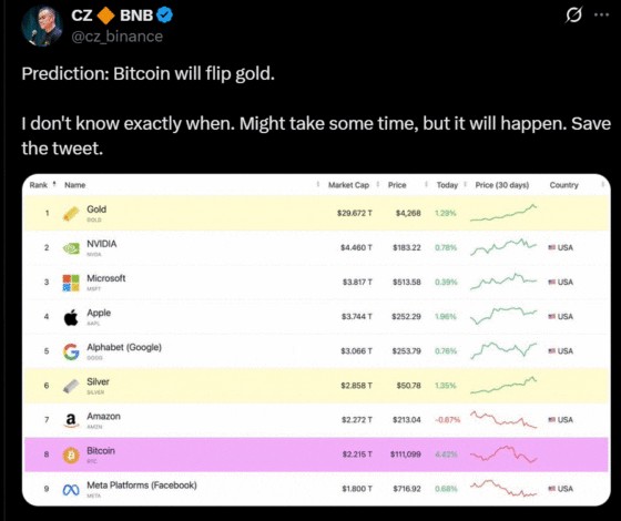 CZ "ビットコインは30兆ドルの価値を超えるだろう"…ビットコイン対金の論争再燃