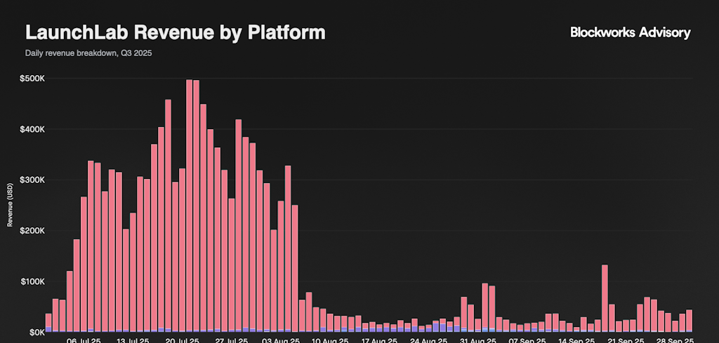ボンク財団による早期採用と、セカンダリートレーディングへの移行に伴うボンディングカーブのローンチからの持続的なスループットが、7月の例外的な収益スパイクを支えました。これらの初期結果は、強力な市場投入の牽引力を示し、LaunchLabのプロダクトマーケットフィットを検証しており、Raydiumが取引場所からトークン作成自体への支配を成功裏に拡大し始めたことを示唆しています。しかし、LaunchLabの収益パフォーマンスは明らかに前倒しであり、四半期の収入の大部分が前半に生成され、ローンチの勢いが8月と9月を通じて緩やかになる中でのことでした。この鈍化は、既存の競合他社への市場シェアの再バランスと、他のエコシステムにおける新しいトークン発行プラットフォームからの競争圧力の高まりと一致しました。