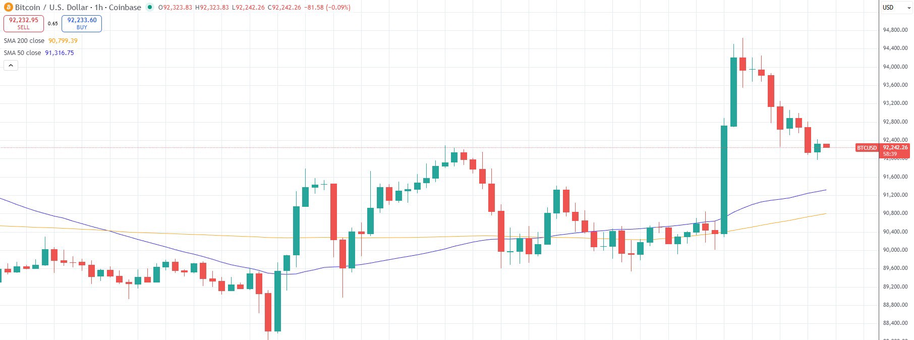 TradingViewによると、火曜日の深間取引でビットコイン(BTC)価格は94,625ドルに跳ね上がり、これは11月25日以来の最高水準となりました。