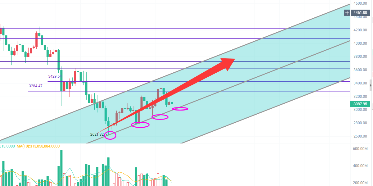 1. ETH:価格が3030-3000付近まで下落したら買いエントリー、ストップは2950。  利確は3130-3250の上方を狙います。