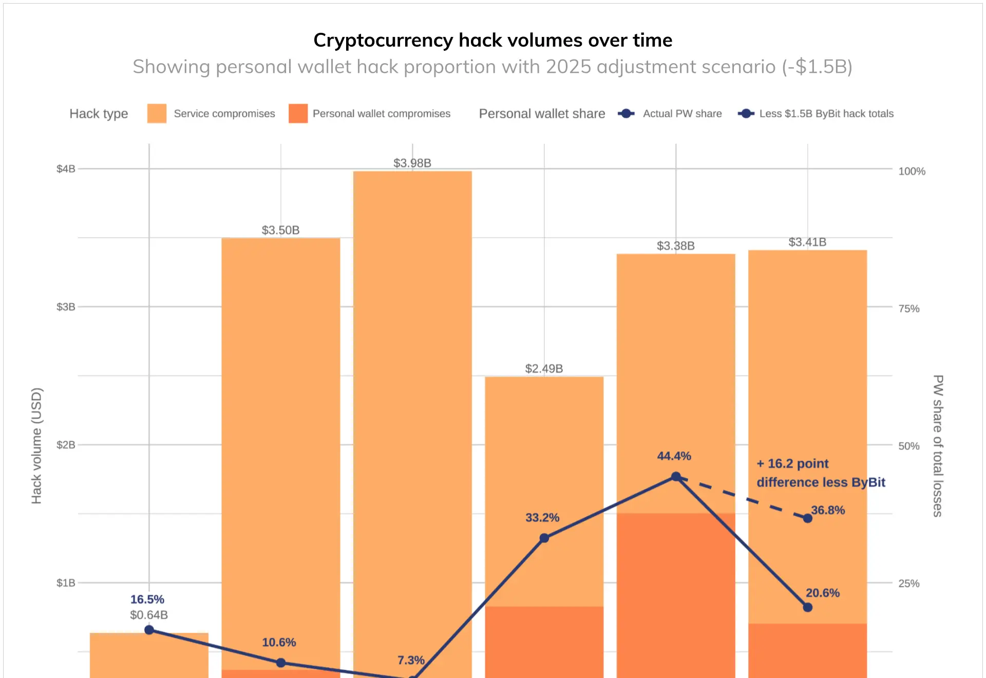 暗号ハッキングは2025年に34億ドルの損失をもたらし、リスクが集中化