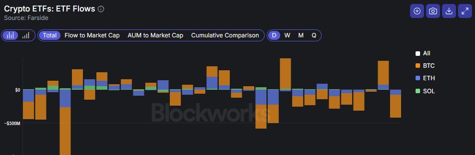 フローは依然として不安定です。12月31日にはETFから4億1780万ドルの資金流出があり、前日記録された4億2820万ドルの流入をほぼ相殺しました。