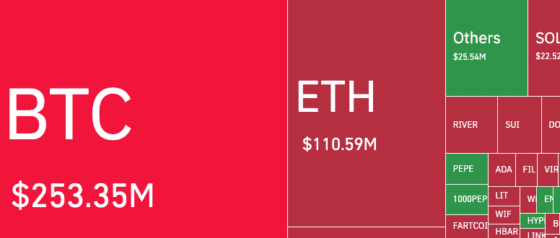 根据CoinGlass数据,过去24小时内比特币约2.5335亿美元(3665億韓元)规模のポジションが清算され、そのうち約94.73%がショートポジションだった。全体のデジタル資産市場では5.2544億ドル(約7602億韓元)規模の清算が発生。