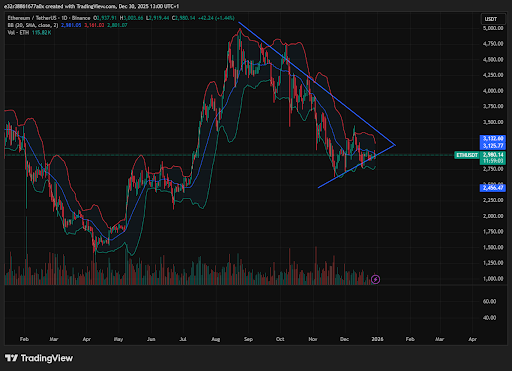 O Ethereum agora negocia próximo de $2.900 enquanto os traders digerem esses sinais. A volatilidade tende a aumentar no final do ano, e grandes detentores frequentemente ajustam posições nesse período.