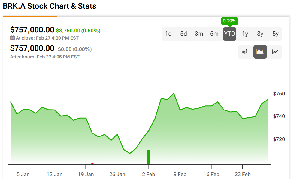 Berkshire Hathaway (BRK.A)(BRK.B) reported fourth-quarter net earnings of $19.2 billion, close to the $19.7 billion it posted a year ago. For the full year, net earnings came in at $67.0 billion, down from $89.0 billion in 2024.