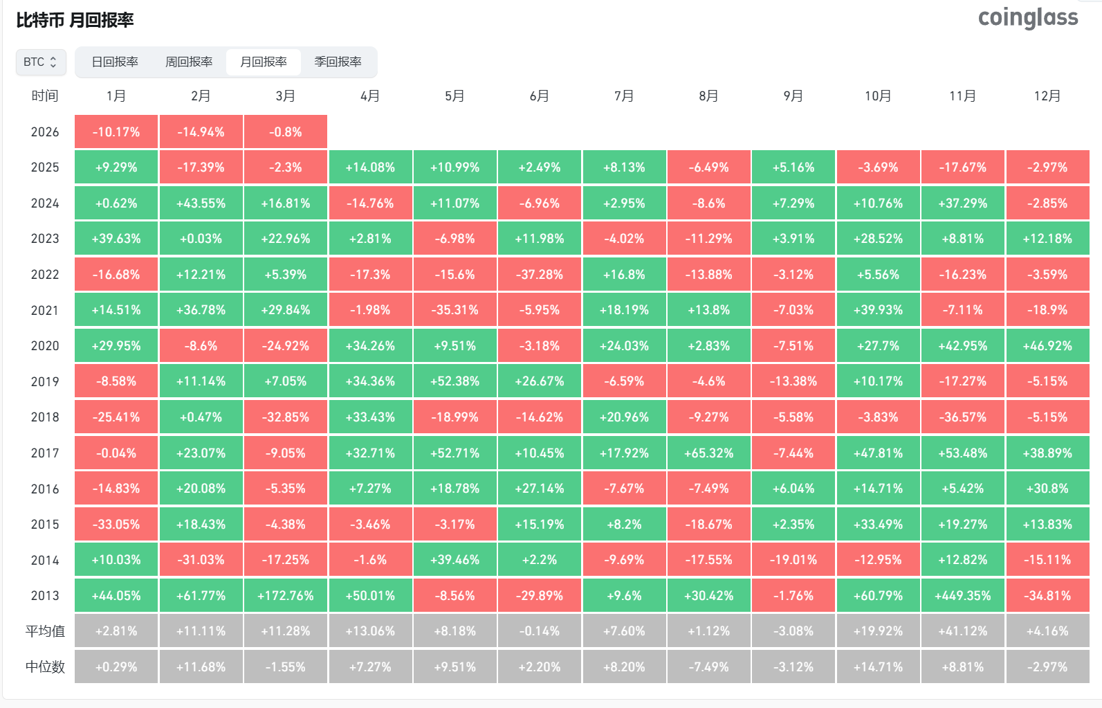 Deep Tide TechFlow News, as of March 1st, according to Coinglass data, the historical average returns for Bitcoin and Ethereum in March are +11.28% and +17.07%, respectively.