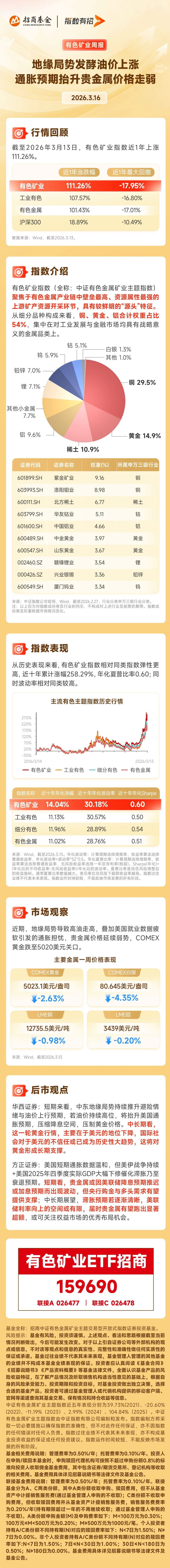 When prices of non-ferrous metals (such as copper, gold, lithium) rise, upstream companies’ profits increase directly and rapidly, making the non-ferrous metals mining index more price elastic with a higher beta. Historically, as of March 13, the cumulative ten-year return of the non-ferrous metals mining index was 258.29%.
