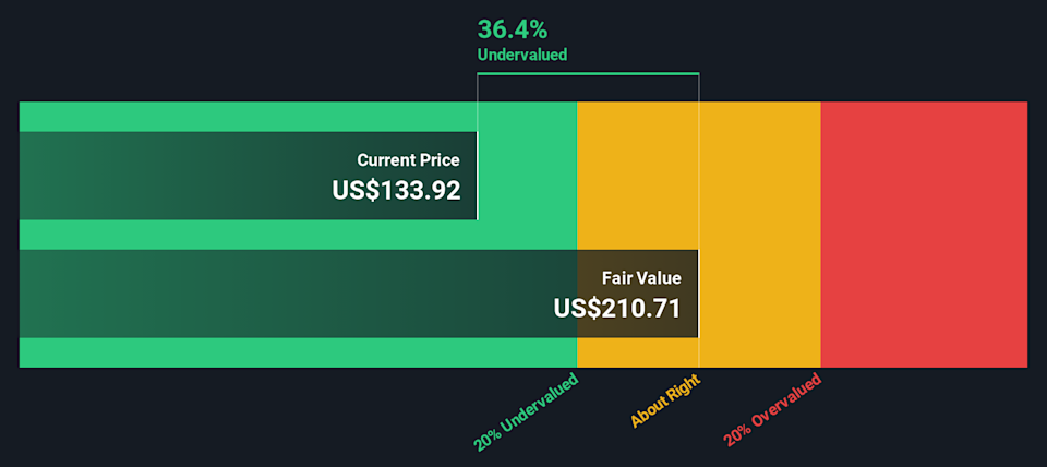 The stock last closed at US$216.50, with returns of 0.4% over 7 days, 58.2% over 30 days, 53.8% year to date, 133.6% over 1 year, and a very large gain over 3 and 5 years. That naturally raises questions about how much optimism is already in the price.