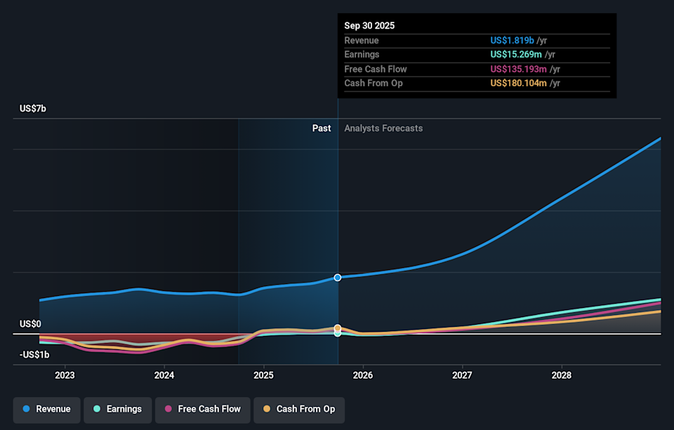 From here, you may want to track whether Bloom Energy converts its US$6b backlog into revenue on the schedule it has laid out, and if the Brookfield partnership results in funded AI factory projects across multiple regions. It is also worth watching how the push to 2 GW of capacity affects unit costs and profitability, given the company’s recent net loss of US$88.43m in 2025. On the risk side, the new data governance disclosure makes future commentary on cybersecurity, privacy compliance, and internal controls important signals, especially as AI data center clients tighten their own requirements.