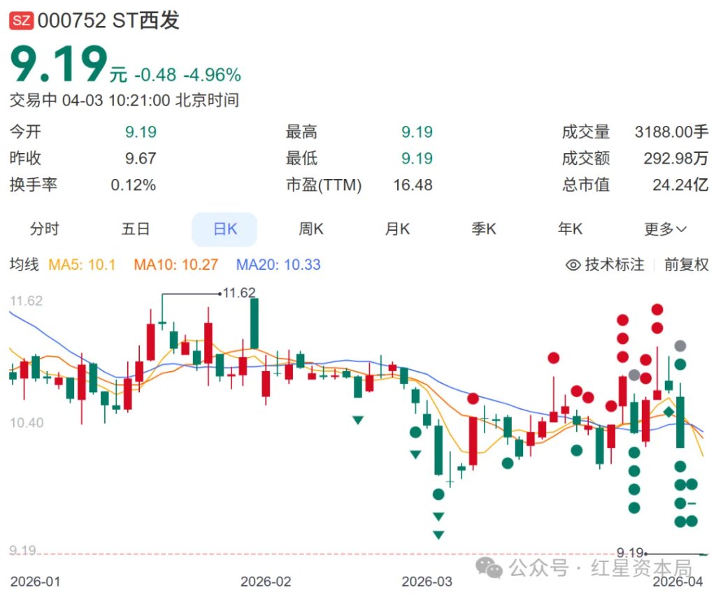 On April 1 and April 2, ST Xifa’s stock hit the daily limit down. On April 3, the company’s stock opened at the daily limit down.