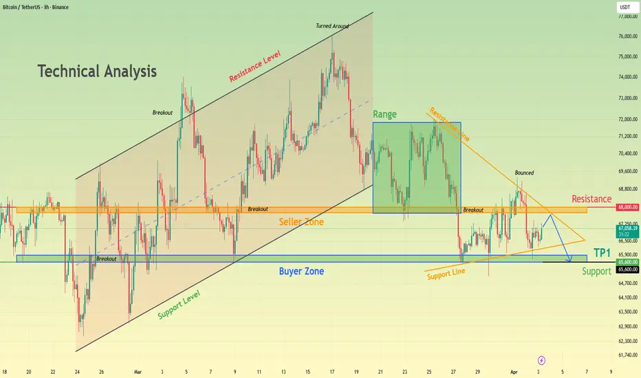 BTCUSDT Liquidity Building Below 68K - Sell-Side Target 65.6K