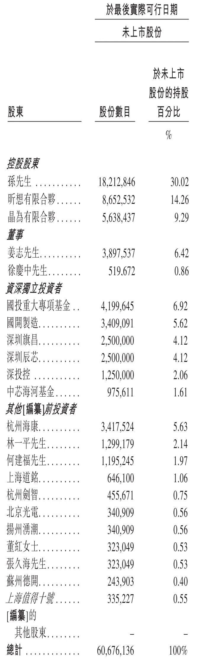 Before the IPO, Jiang Zhi held 6.42%, Xu Qingzhong held 0.86%, the SDIC Major Special Project Fund held 6.92%, Guokai Manufacturing held 5.62%, Shenzhen Qichang and Shenzhen Chenxin respectively held 4.12%;