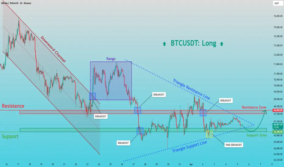 BTCUSDT: Triangle Pattern on BTC - Watching 68K Resistance