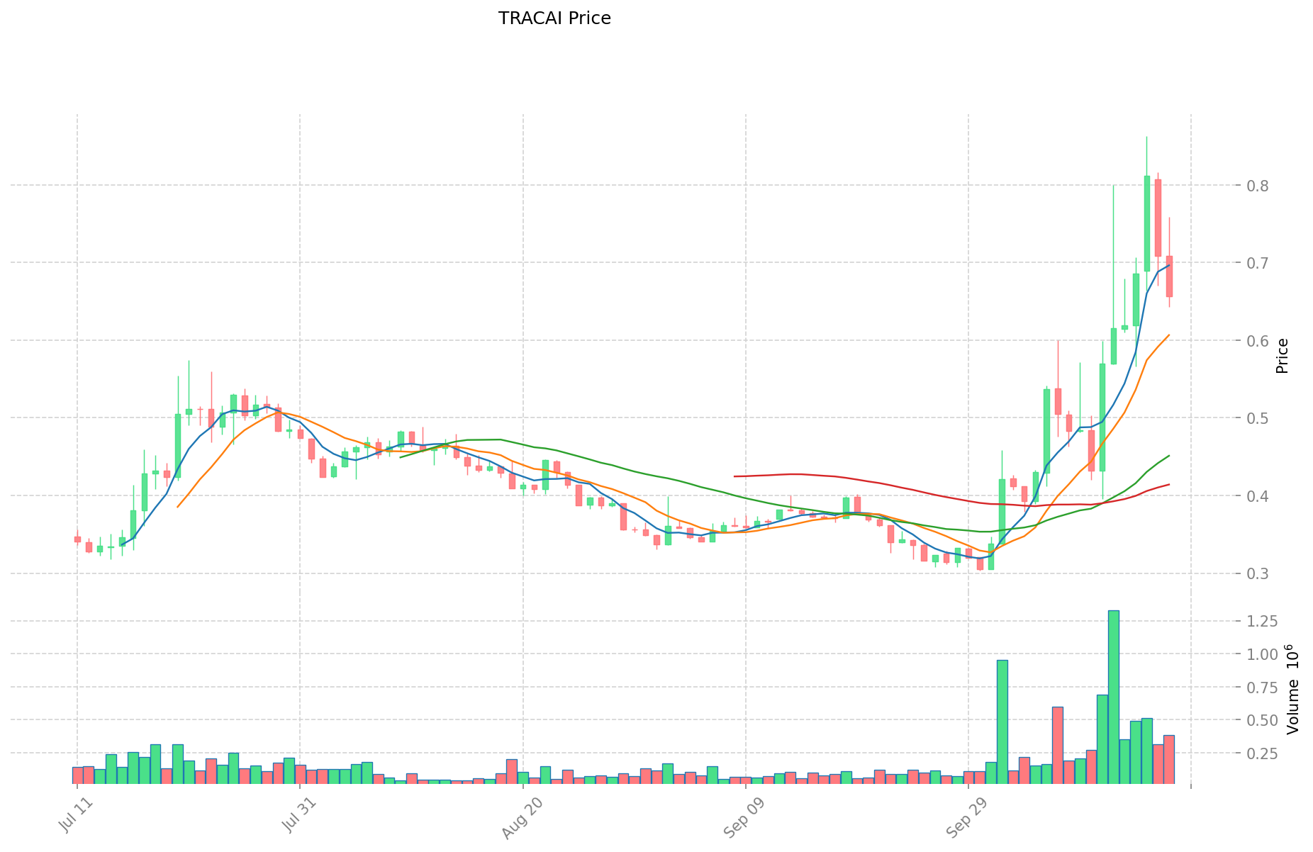 R: Em outubro de 2025, o preço da TRACAI é de cerca de US$ 0,6422, com capitalização de mercado de US$ 320.809.054,89.