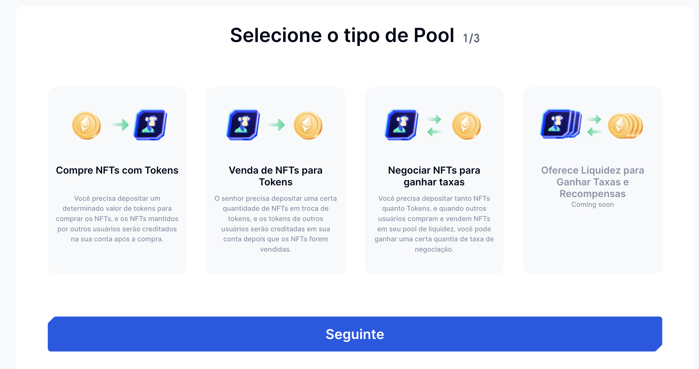 Como faço para criar um pool de liquidez NFT?