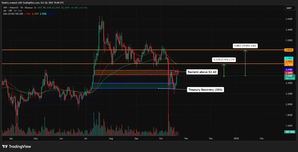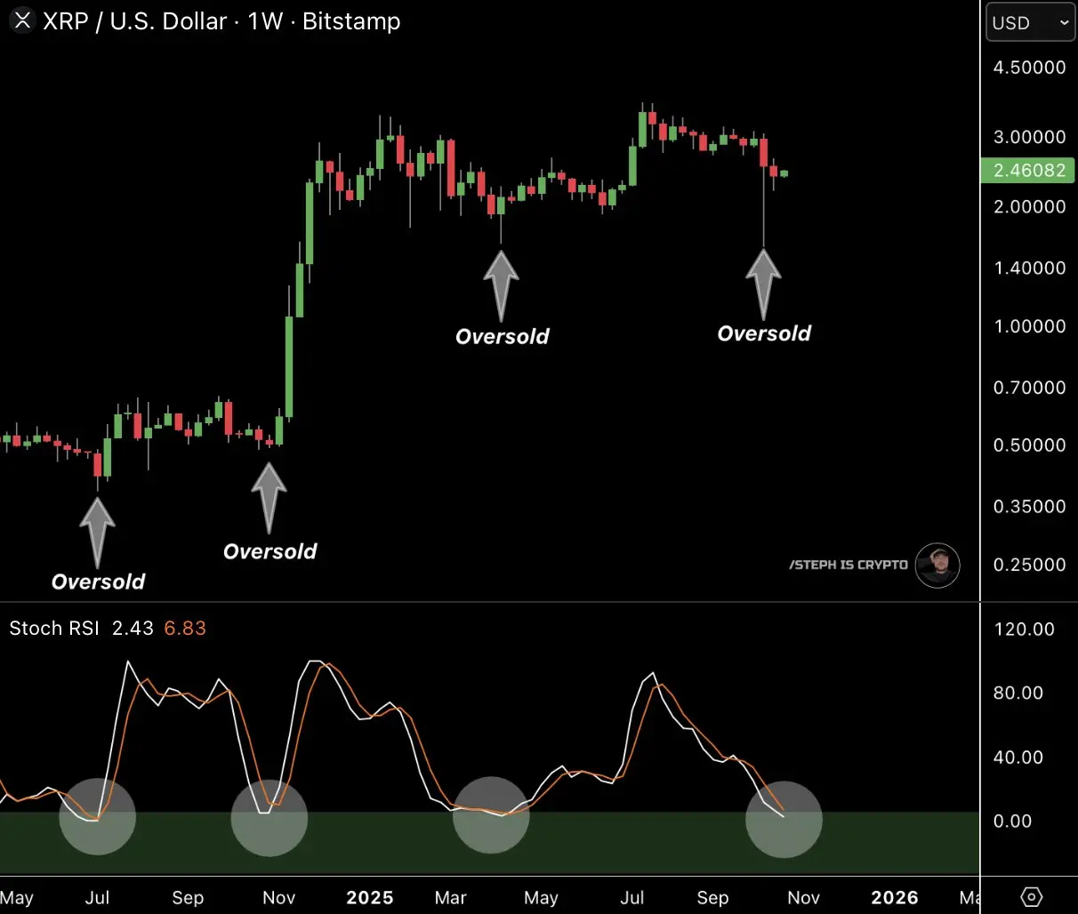 O aumento da emoção social deve-se principalmente a dois eventos: o plano de tesouraria de 1 bilhão de dólares da Evernorth e a venda de 120 milhões de dólares por Larsen. Os analistas enfatizam que “XRP está sobrevendido semanalmente”, enquanto outros alertam para um “recuo de gato morto”, sendo necessário “uma recuperação contínua acima de 2,6136 dólares para emitir um sinal de reversão.”