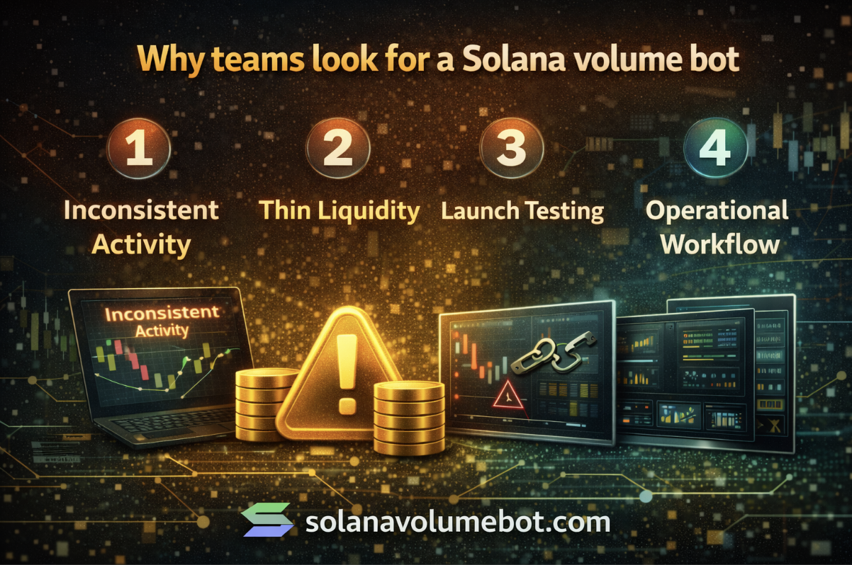 A maioria dos projetos que buscam “bot de volume Solana” está reagindo a dificuldades reais de lançamento. Aqui estão as razões mais comuns: